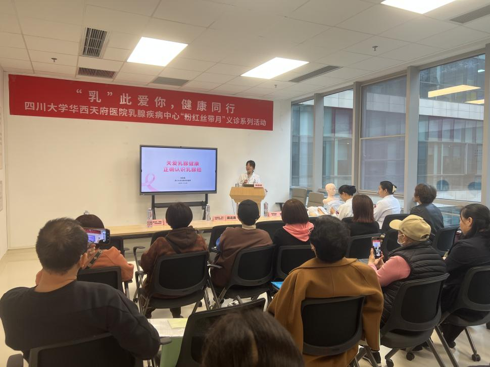 10月29日,四川省抗癌协会乳腺癌专委会、我院乳腺疾病中心、临床医技科室第十一党支部共同举办“‘乳’此爱你,健康同行”义诊活动,40余名乳腺疾病患者和家属参加。本次活动以“健康科普 + 义诊咨询”为核心,既提供乳腺健康专业指导,也传递“主动关注乳腺健康”的生活理念,助力“早预防、早发现、早治疗”深植于大众健康意识。
