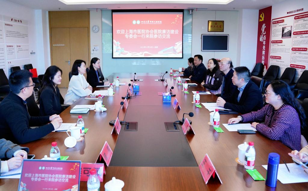 11月20日下午,上海市医院协会医院廉洁建设专委会路新畅主任委员一行来院开展调研交流。我院纪委书记刘茜,组织部、医务部负责人参加交流活动。四川大学华西医院纪委办公室(监察处)纪检监察员吴丹等陪同参加。
