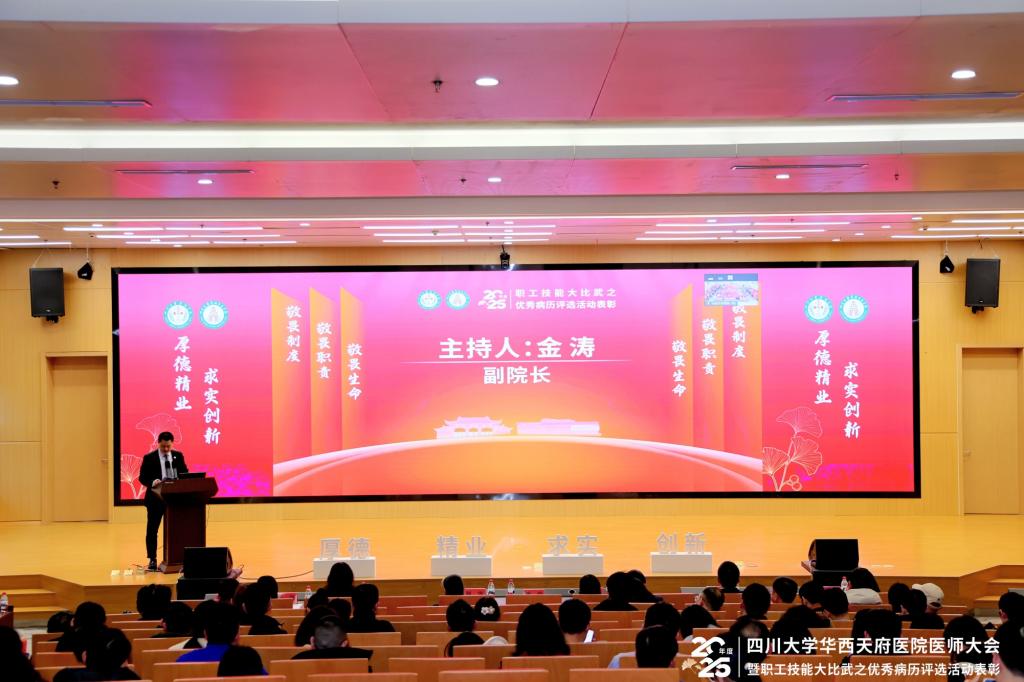 12月28日,以“筑牢医疗安全基石,护航医院高质量发展”为主题,四川大学华西医院召开2025年度医师大会。我院作为分会场之一,在行政楼多功能厅同步召开2025年度医师大会暨职工技能大比武之优秀病历评选活动颁奖仪式。我院饶莉书记、康焰院长等全体在家院领导、医疗口职能部门负责人及全院执业医生共计300余人参加大会。