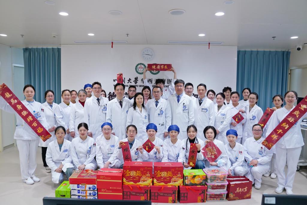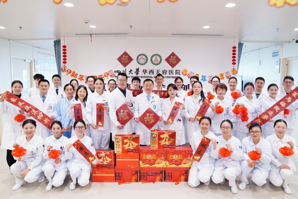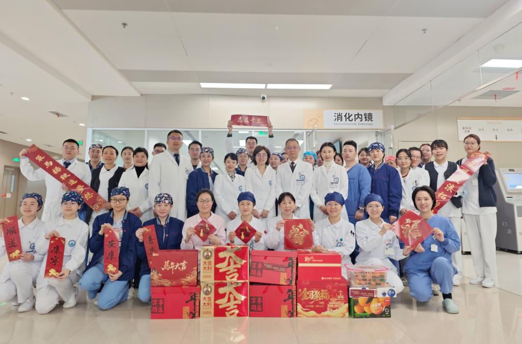 饶莉书记、康焰院长等院领导在慰问中向大家始终坚守医者初心、深耕医疗一线表示感谢,祝愿大家新年快乐、阖家幸福,并叮嘱大家在繁忙的医疗工作中务必保重身体,合理调整作息,利用春节假期好好休整放松。值守人员要确保医疗安全,祝共度一个平安、祥和、温馨的新春佳节。