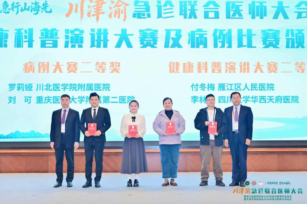 近日,川津渝急诊联合医师大会在成都举行。大会汇聚了来自四川、天津、重庆及全国各地的急诊医学精英,共同就急诊医学的前沿进展与高质量发展进行了深入探讨与交流。大会同步开展健康科普大赛、病例大赛,在健康科普大赛环节,我院急诊科团队脱颖而出,荣获二等奖。