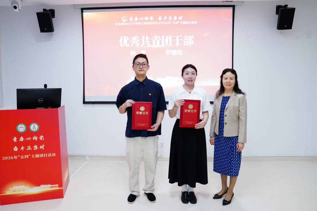 表彰仪式环节,刘华副书记首先宣读《共青团四川大学华西天府医院委员会关于表彰2025年度五四红旗团支部、优秀共青团干部和优秀共青团员的决定》。