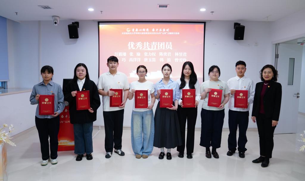 全院2个五四红旗团支部、2名优秀共青团干部、21名优秀共青团员获得表彰。饶莉书记、刘华副书记、沈莎总会计师分别为受表彰的集体和个人颁奖。