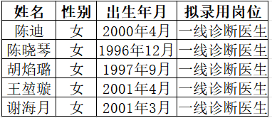 根据相关文件规定,按照公开招聘、择优录用的原则,现将拟录用人员予以公示,公示时间为5个工作日。公示期间如有异议,请实名向四川大学华西天府医院人事科教部反映。联系电话028-60660028。